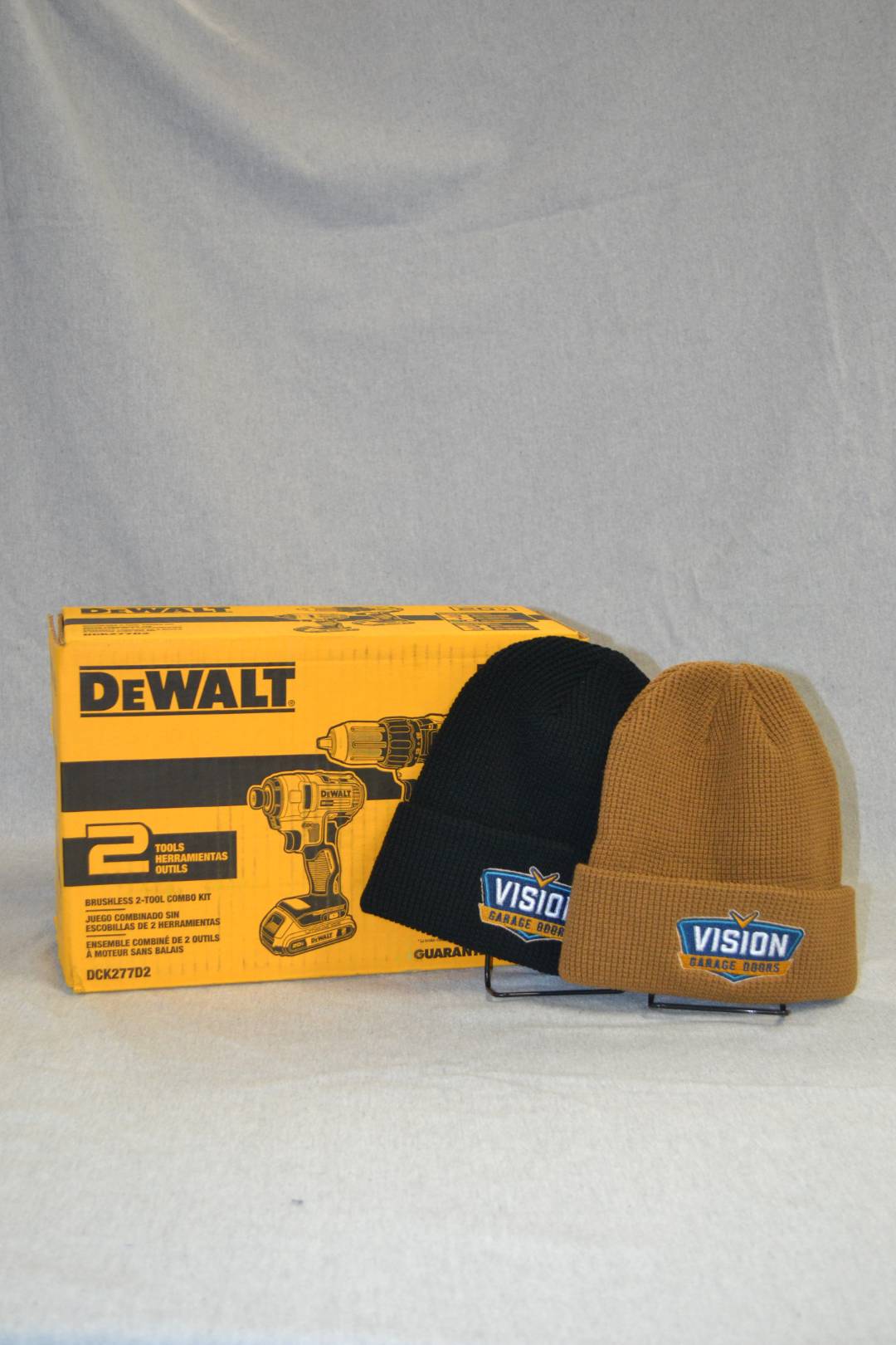 This DEWALT 20V MAX* brushless kit includes one 1/2 in. drill/driver, 1/4 in. impact driver, two 2.0 compact batteries, charger, and a contractor bag. The DCD777 1/2 in. drill driver is designed with a high-perofrmance motor that delivers 340 unit watts out. The DCF787 1/4 in. impact driver has a compact and lightweight design while providing 1,500 in-lbs. of torque. Thank you Vision Garage Doors for your donation!